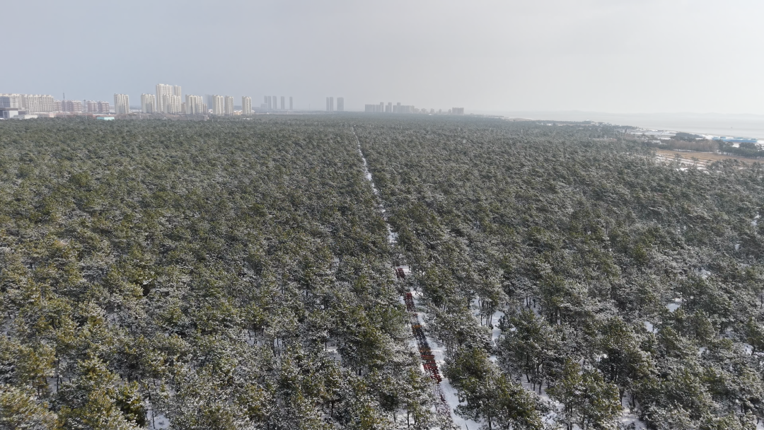 风起时,松涛阵阵与海浪声声共振;鸟翔时,羽翼翩跹与天光云影共舞;浪涌时,雪沫飞溅与金沙相映成画;雪落时,琼枝玉树与湿地清波相融。目之所及,皆是诗意,每一寸光景都藏着冬日独有的清灵与雅致。