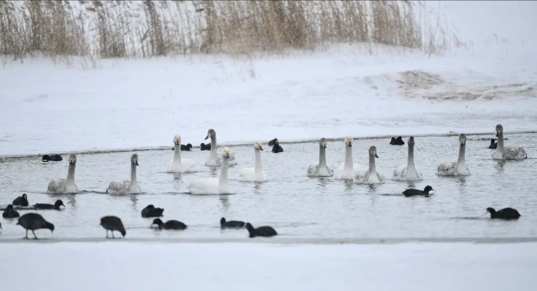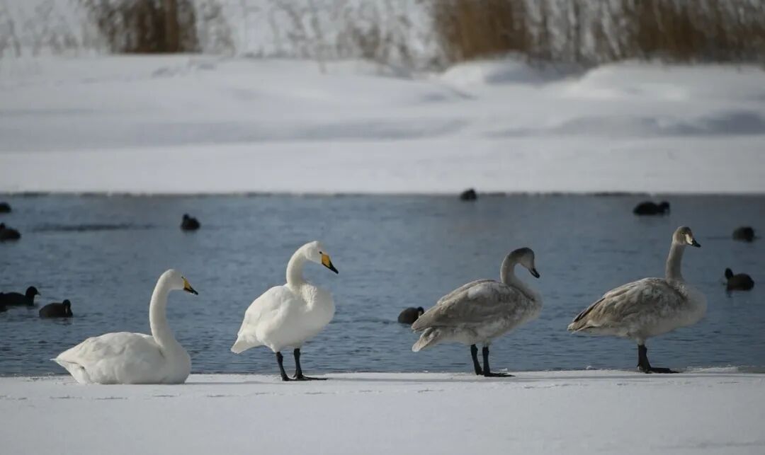 在金滩上与天鹅相望
