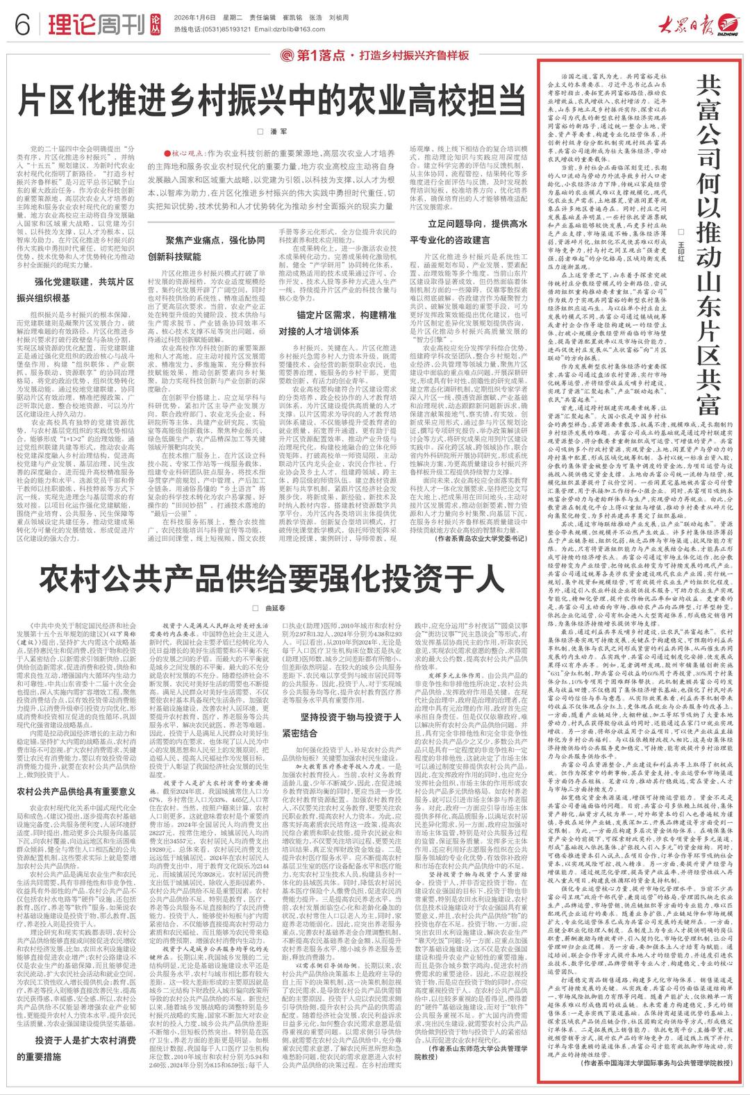 治国之道,富民为先。共同富裕是社会主义的本质要求。习近平总书记在山东考察时指出,要拓宽共同富裕路径,推动农业增效益、农民增收入、农村增活力。近年来,山东多地立足乡村振兴实际,探索以共富公司为代表的新型农村集体经济实现共同富裕的新路子,通过统一整合土地、资金、资产等要素,构建专业化经营体系,并创新村级身份分配机制实现村级共富共享,共富公司逐渐成为壮大集体经济、带动农民增收的重要载体。