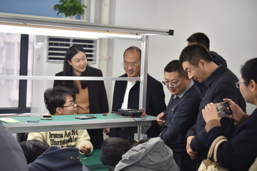 仪式结束后,嘉宾一行移步至2号楼金工实习实训室,观摩学生上课实况,参观人工智能、网络、鸿蒙等前沿技术实训室。在交流座谈环节,校企双方围绕课程设计、技术应用与人才共育展开深入讨论,进一步明确了以产业需求为导向的协同培养路径。