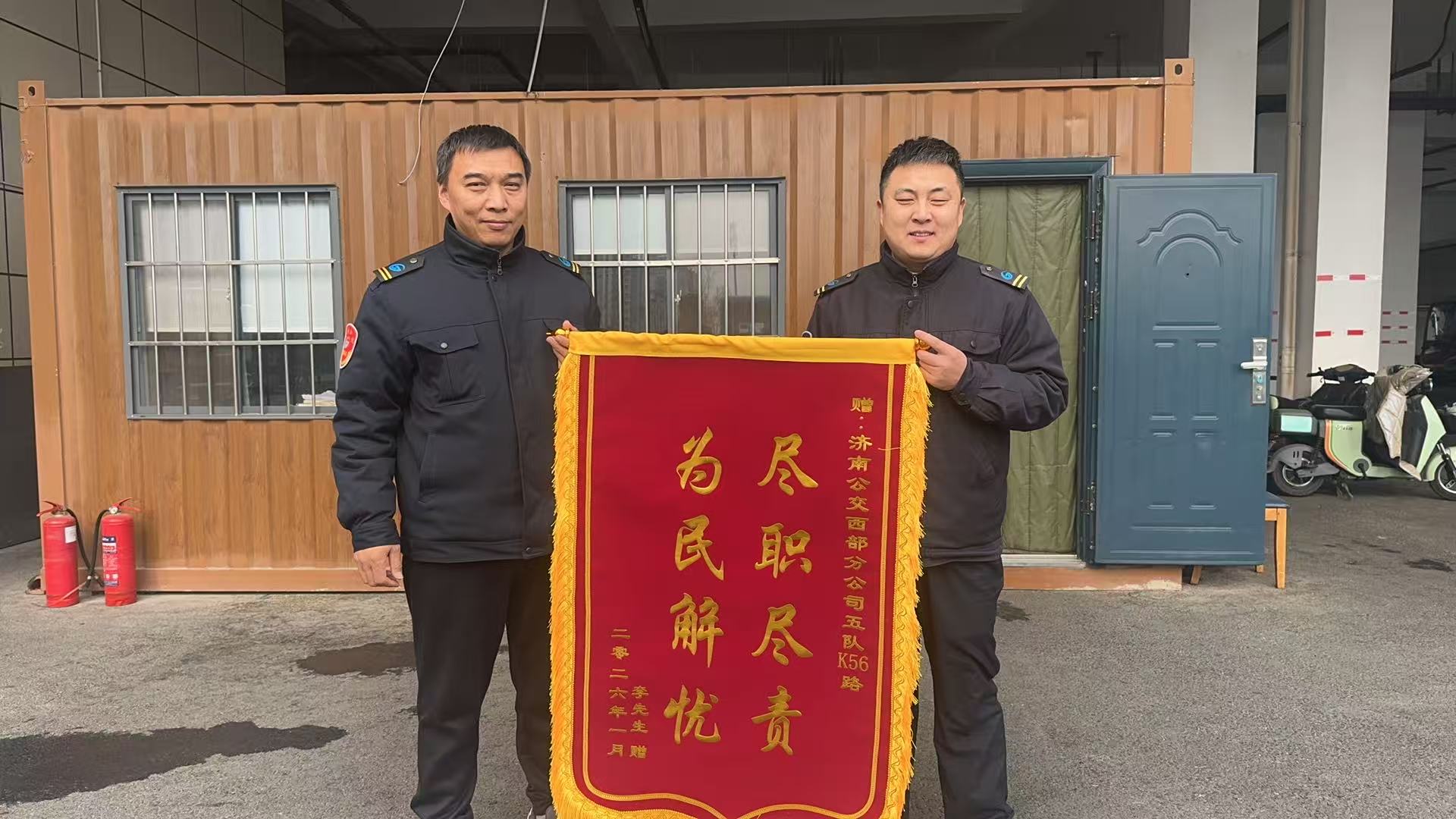 元旦假期刚过,济南公交西部分公司五队便收获了一份特殊的新年礼物——一面满载乘客谢意的锦旗。这份温暖的背后,是节日期间车队驾驶员们拾金不昧的暖心善举。