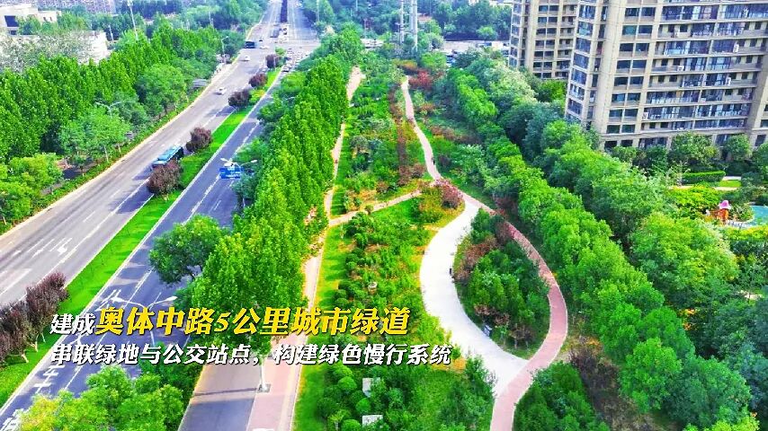 城市绿道。根据城市现有布局和生态环境特点,计划在奥体中路打造景观美、生态优的5公里城市绿道,有机串联周边公园绿地、公共交通站点等。截至目前,工程项目已完工。
