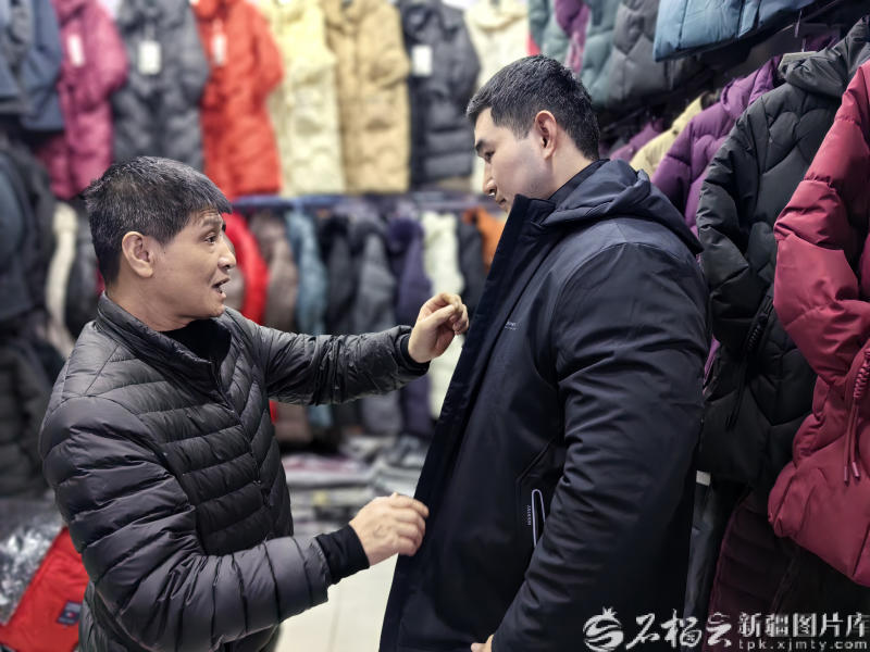 1月5日,市民在新疆国际商贸城选购棉服。
