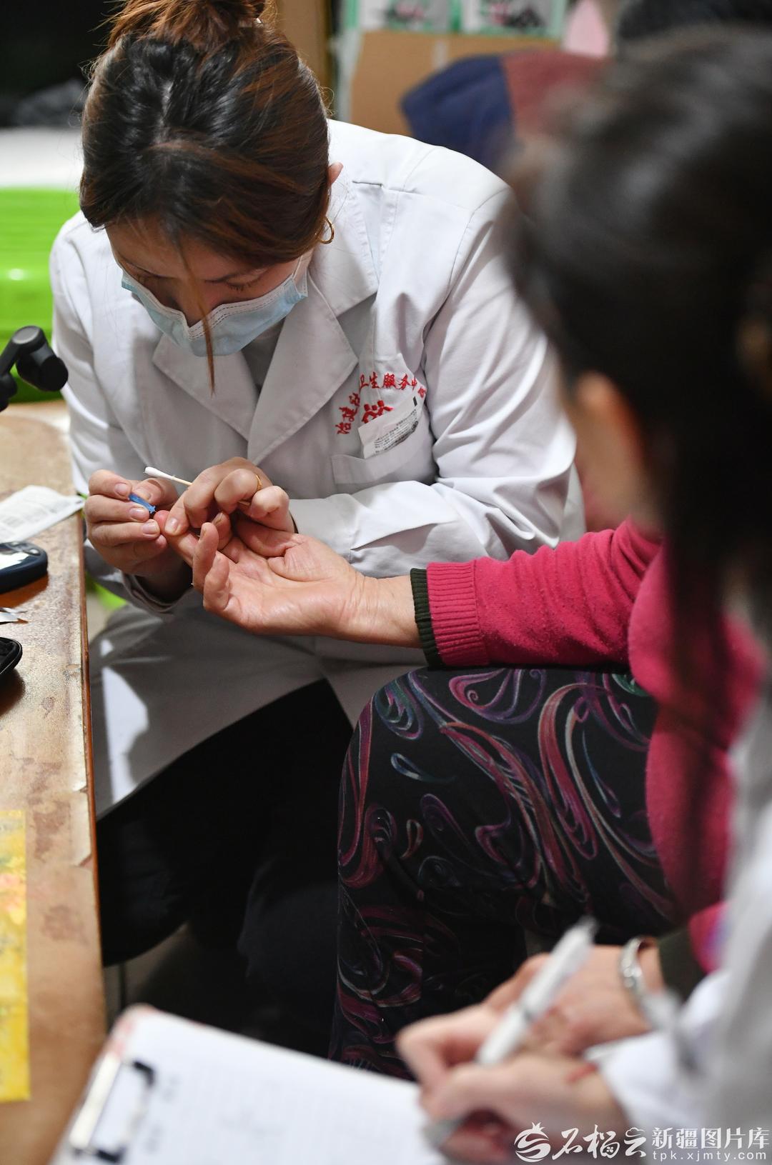 2025年11月10日,乌鲁木齐高新区(新市区)冶建社区卫生服务中心工作人员在居民家中测血糖。天山网-新疆日报记者 邹懿摄