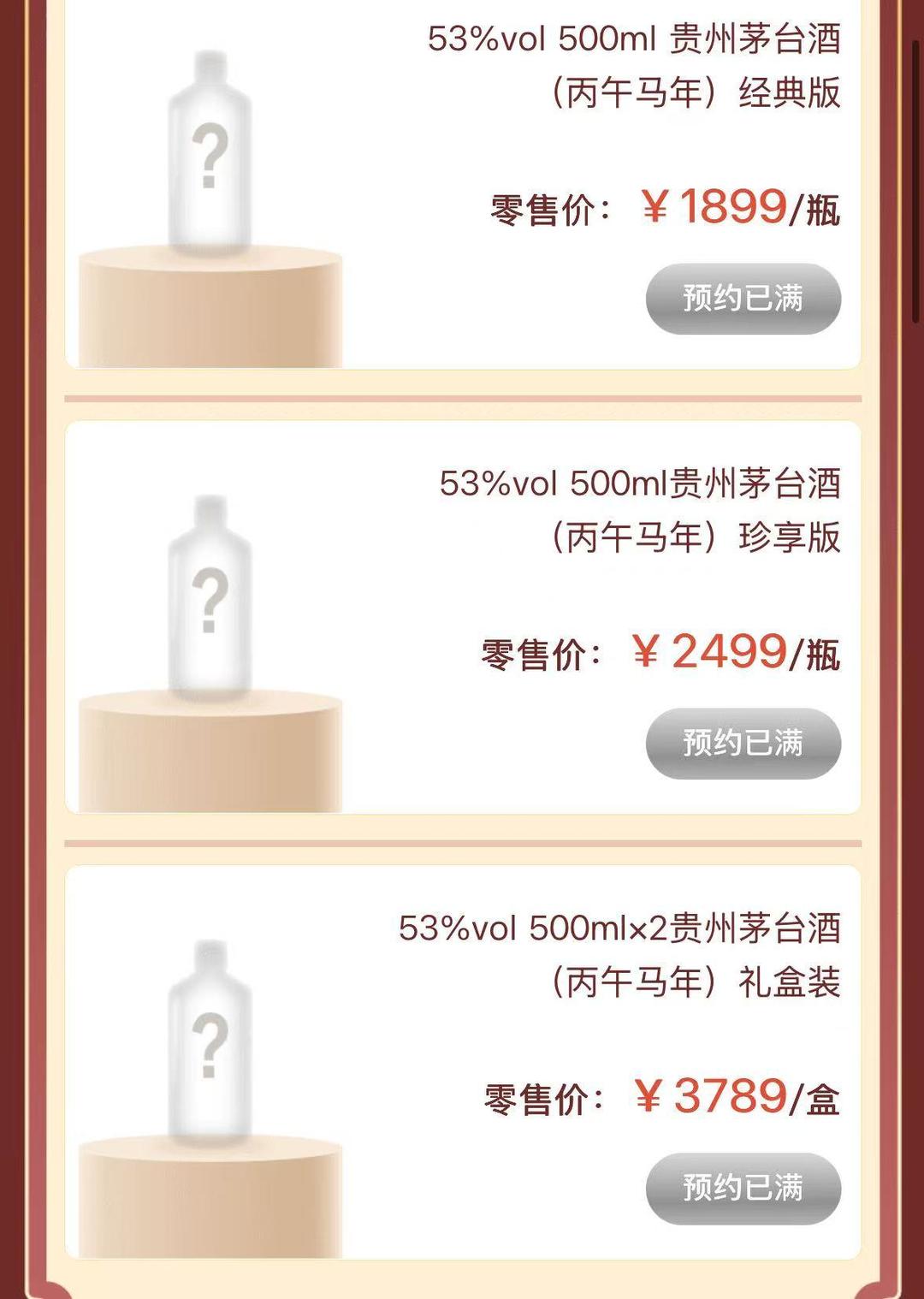 丙午马年生肖酒亮相,茅台预售通道目前显示“预约已满”