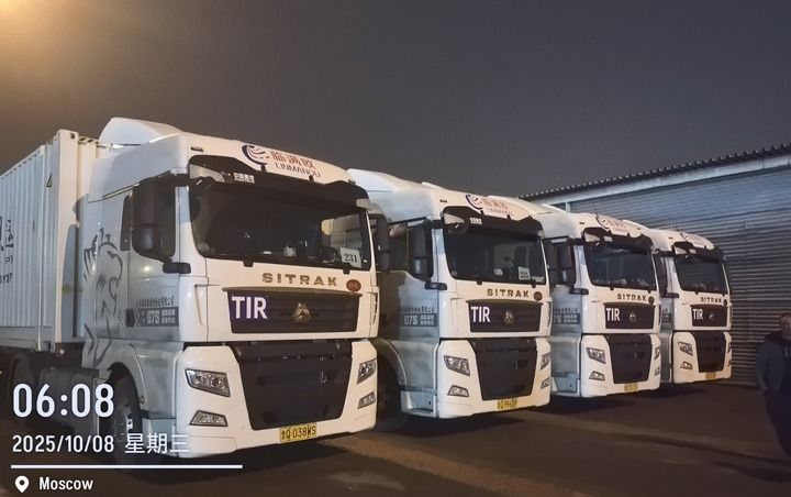 这是临满欧国际物流有限公司抵达莫斯科的TIR货车。(受访者供图)