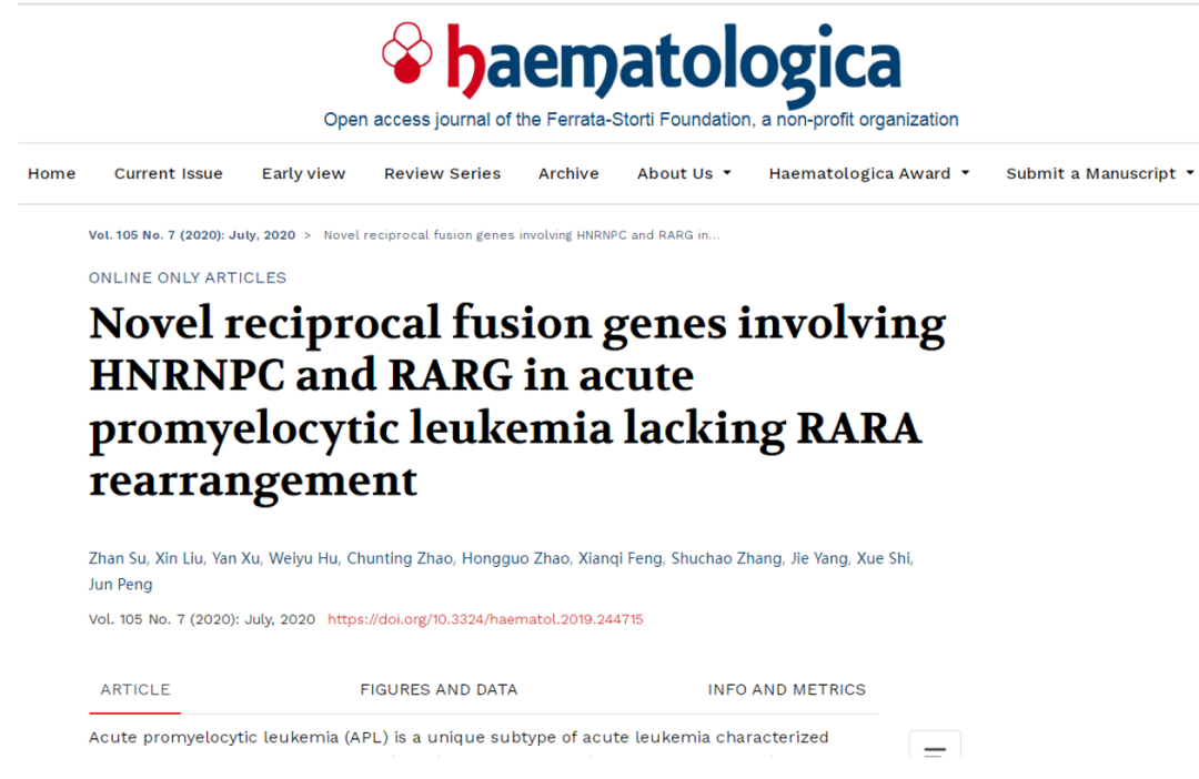 急性早幼粒细胞白血病是目前临床研究最为成熟的一类白血病,绝大多数存在维甲酸受体α(RARA)基因突变形成的融合基因。然而,少数急性早幼粒细胞白血病病例无RARA融合基因,多年来未明确其关键基因突变,导致了部分病例在白血病分类中的归属尚无定论。近十年来,国内外专家陆续在此类病例中发现了其它维甲酸受体(RARG、RARB)的一系列新融合基因,其中包括苏湛等专家团队发现的HNRNPC::RARG融合基因,成功破解了此类病例的致病基因密码。