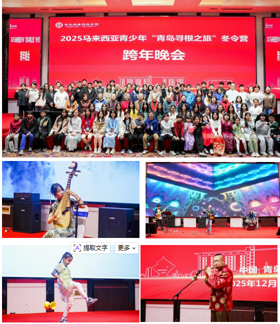 2026年1月4日,为期八天七夜的马来西亚青少年“青岛寻根之旅”冬令营在青岛恒星科技学院顺利落下帷幕。本次活动由青岛恒星科技学院与马来西亚世界学堂国际研学旅行有限公司联合主办,以“中文+文化+科技+体验”为核心,通过丰富的课程安排与深度的城市探访,成功推动了中马青少年之间的文化交流与情感融合。