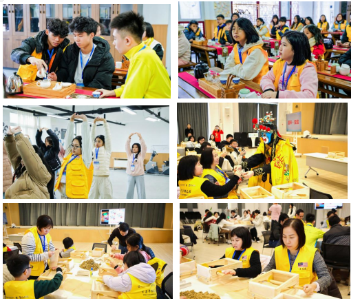在冬令营期间,营员们参与了多门特色文化实践课程。在中国诗词欣赏课上,学员们通过诵读经典、解析意象,亲身体验了汉语的韵律之美与意境之远;武术课程以八段锦为载体,将招式教学与传统养生哲学相融合,传递出“形神合一”的中式智慧;茶艺实践从识别崂山绿茶到沏茶品茗,贯穿礼仪修养与“和静清寂”的人文精神;手工串珠课程,作为非物质文化遗产代表性项目,通过沉浸式体验让营员们近距离感悟非遗之美;中药文化课程则通过辨识药材、制作艾灸条等环节,生动阐释了传统中医的深刻内涵。学员们纷纷表示,这些课程兼具趣味性与教育性,让他们在动手操作中深化了对中华文化的理解。