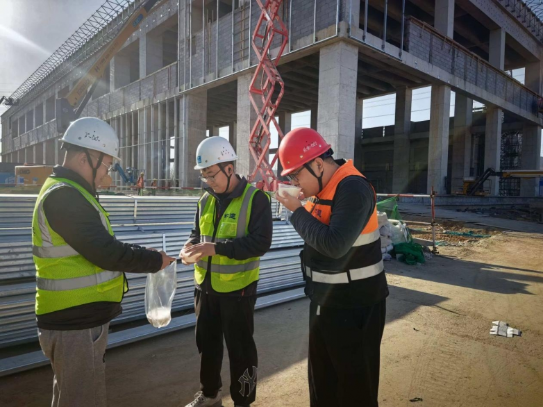 与此同时,温情在各项目间持续流淌。莒南供水项目食堂里,大家围坐一起揉面、擀皮、包馅,笑语欢声中共包“同心饺”,暖胃更暖心。青岛国际邮轮港区二号码头项目上,崭新厚实的御寒冬衣第一时间发放到每位户外作业人员手中,为他们抵御凛冽寒风。沈海高速黄岛服务区项目则设立了“暖心驿站”,持续供应燕麦粥、热牛奶等热饮,让穿梭在工地的建设者随时能饮上一口滚烫的关怀。