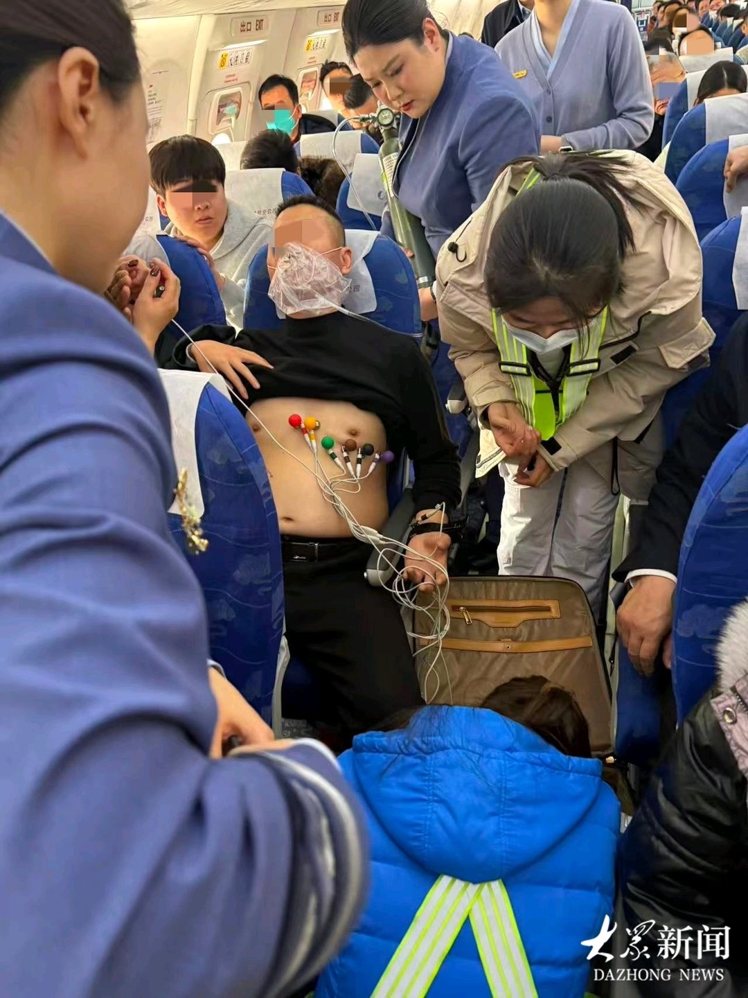 1月5日,由济南飞往银川的山航SC8721航班于上午10:05正常起飞。起飞约25分钟后,客舱内突发紧急状况:一名男性旅客突发心脏不适,出现心慌、手麻、头痛等症状,情况危急。