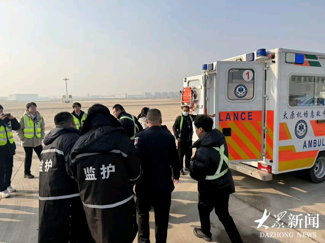 10:55,航班安全平稳降落在太原机场。急救人员立即登机,对已意识昏迷的旅客进行初步检查。太原营业部工作人员积极协助,将旅客稳妥转移至担架,经由救护车快速转运至医院进行进一步救治。在完成必要的保障工作后,该航班于当日12:08从太原机场起飞,继续后续航程。