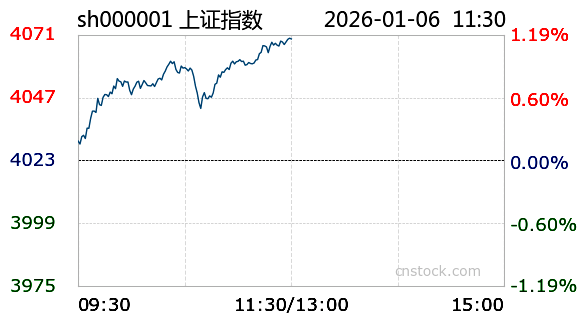 AI小壹1月6日讯 沪市小幅上涨,最高触及4069.91点,最低下探4025.09点,振幅1.14%。截至今日11:30收盘,上证指数报4069.38点,涨幅1.14%,成交额7423.2亿元,成交量4.4亿;深证成指报13940.24点,最高13951.4点,最低13827.79点,涨幅0.81%,成交额1.04千亿元,成交量5.92亿;创业板报3293.18点,最高3319.97点,最低3265.73点,跌幅0.04%,成交额4885.55亿元,成交量1.81亿。