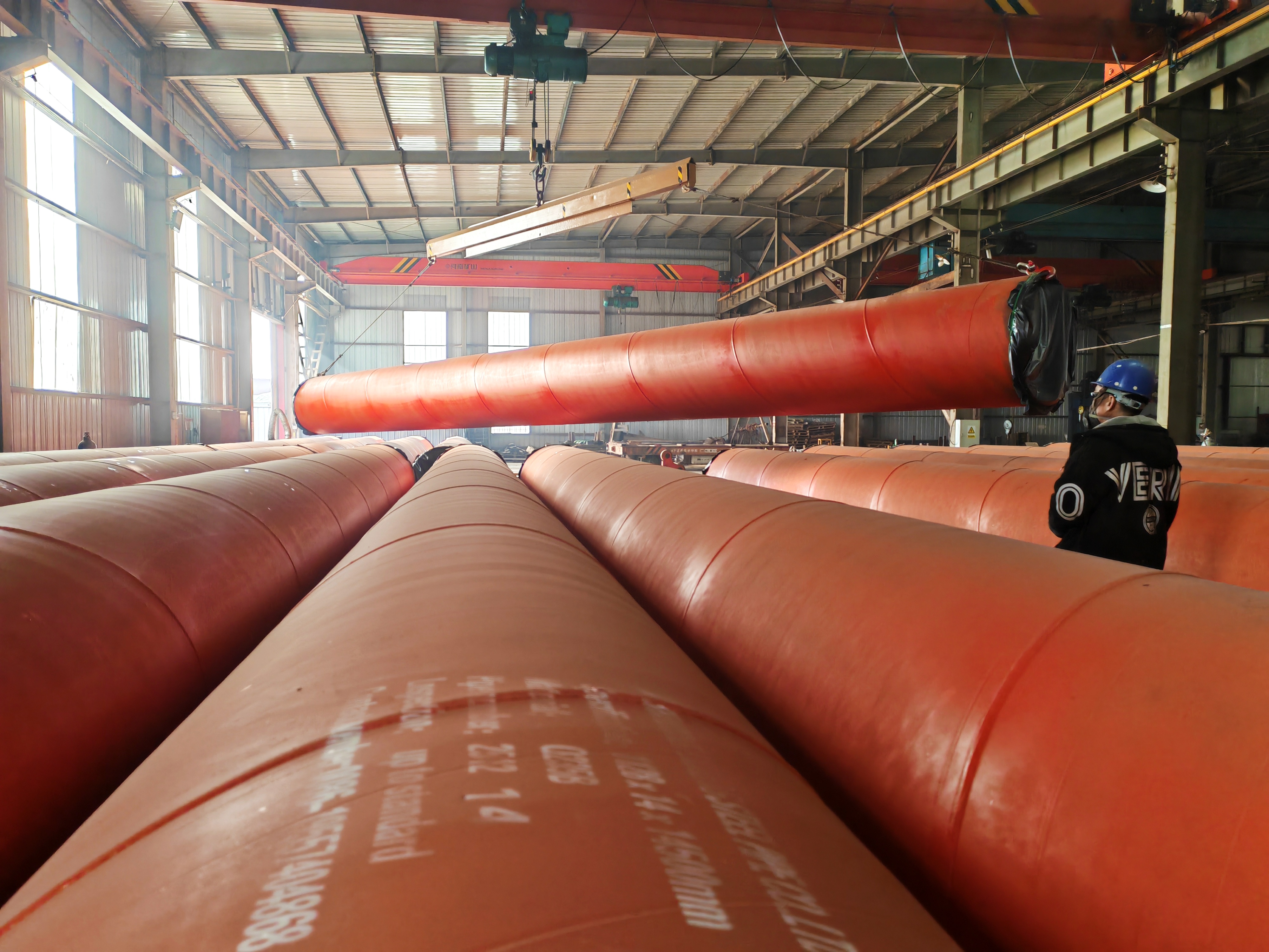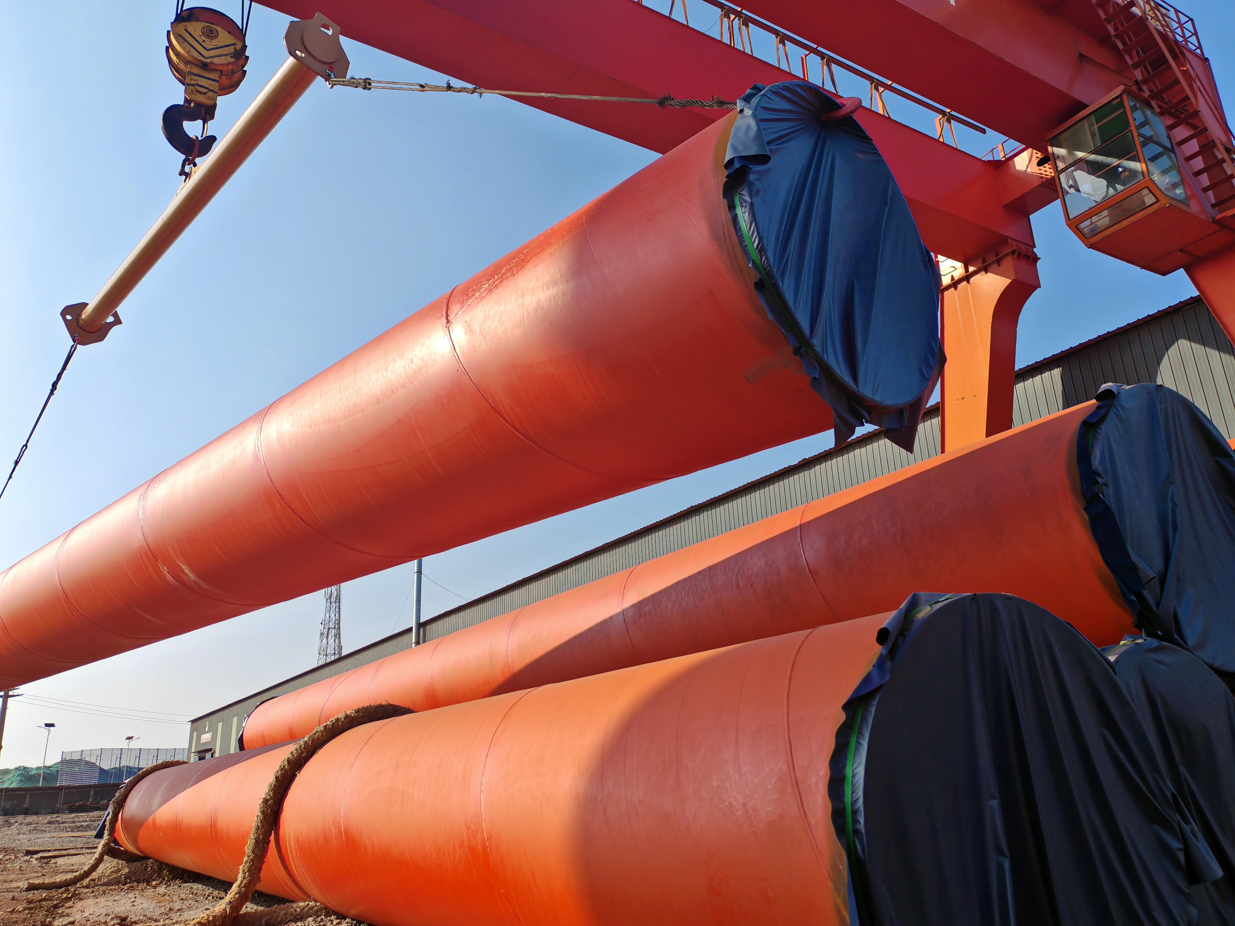 1月4日,位于无棣东风港经济园区的山东浦程钢管有限公司的员工在吊运光伏钢基础制件,为出口塞内加尔做准备。该公司是滨州市首家海上光伏钢基础制件生产企业,产品主要用于海上光伏桩基,广泛应用于近海海域的新能源建设开发。近日,该公司的产品首次批量出口至非洲国家塞内加尔,标志着滨州市在新能源装备制造领域迈出重要一步。(大众新闻记者韩凯通讯员高士东张家慧报道)