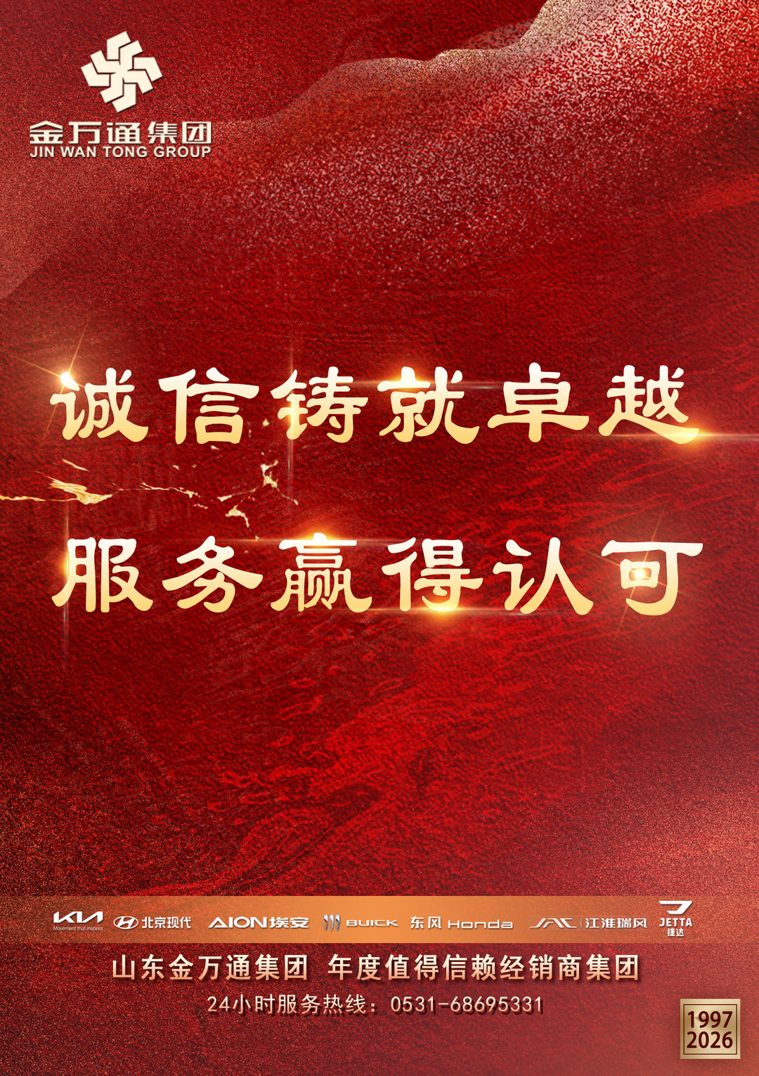 自1997年成立以来,金万通集团扎根齐鲁大地,已逐步成长为山东省内具有广泛影响力的汽车经销服务企业。集团旗下拥有上汽通用别克、东风本田、起亚、北京现代、一汽捷达、广汽埃安、江淮汽车等众多品牌,在全省建有16家标准4S店及覆盖多地的服务网络,形成了一套标准化、专业化、网络化的汽车服务体系。