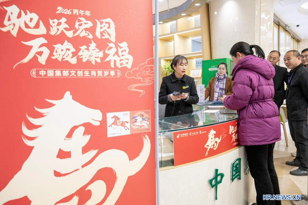 이날 장쑤(江蘇)성 쑤첸(宿遷)시 중국우정그룹 파잔(發展)대로 지국에서 '병오년' 연하우표를 사기 위해 줄을 서고 있는 우표 수집 애호가들. 2026.1.5