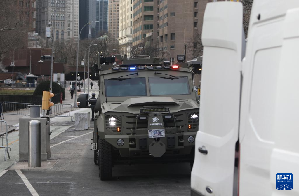 5日,美国纽约南区联邦地区法院警戒森严,大批执法人员维持秩序。法院大楼内,上百名记者和民众一早便排起长队,等待经过安检后进入法庭旁听。