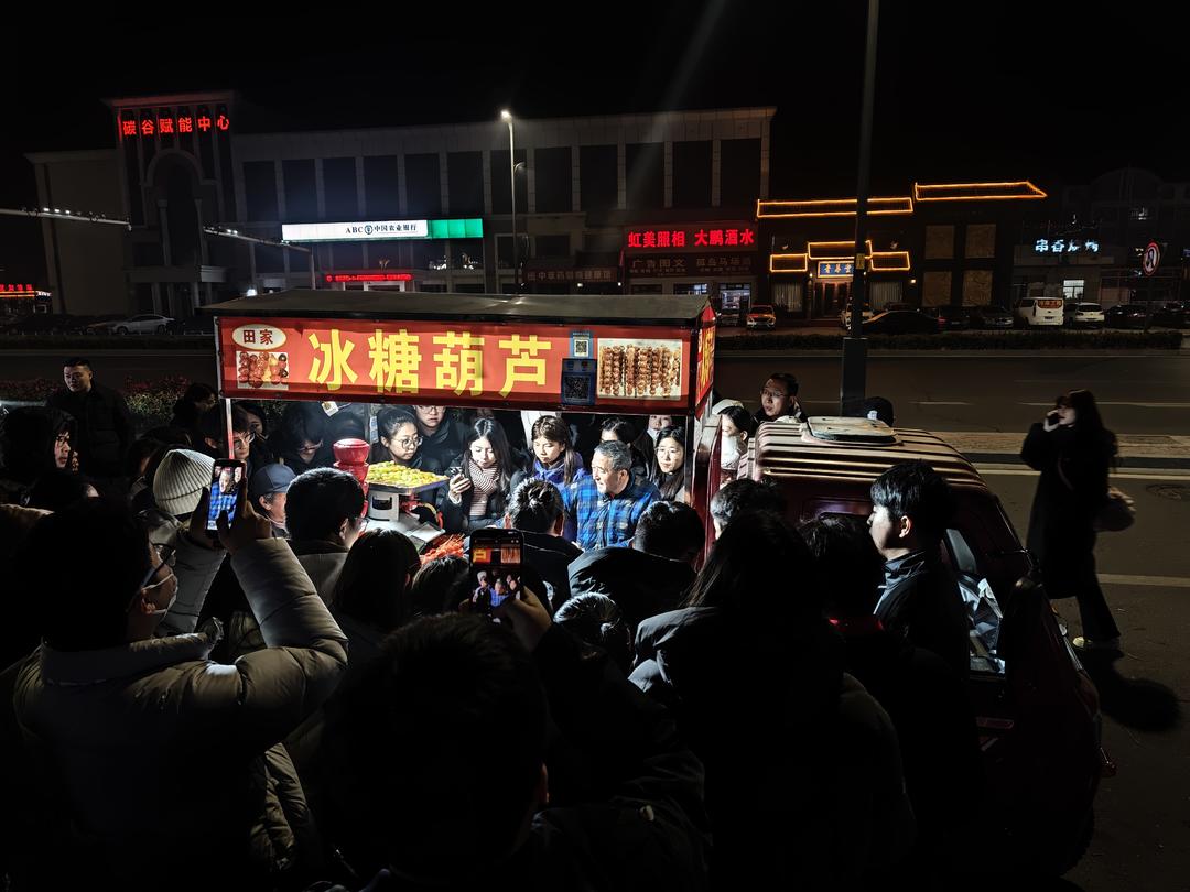 谁承想,这串承载着生计重量的糖葫芦,竟成了全城爱心的信物:大学生们排起长队助力“多买一串早收摊”,上班族绕路而来“不用找零”,海外游子隔着山海转账“请大家吃串糖葫芦”。