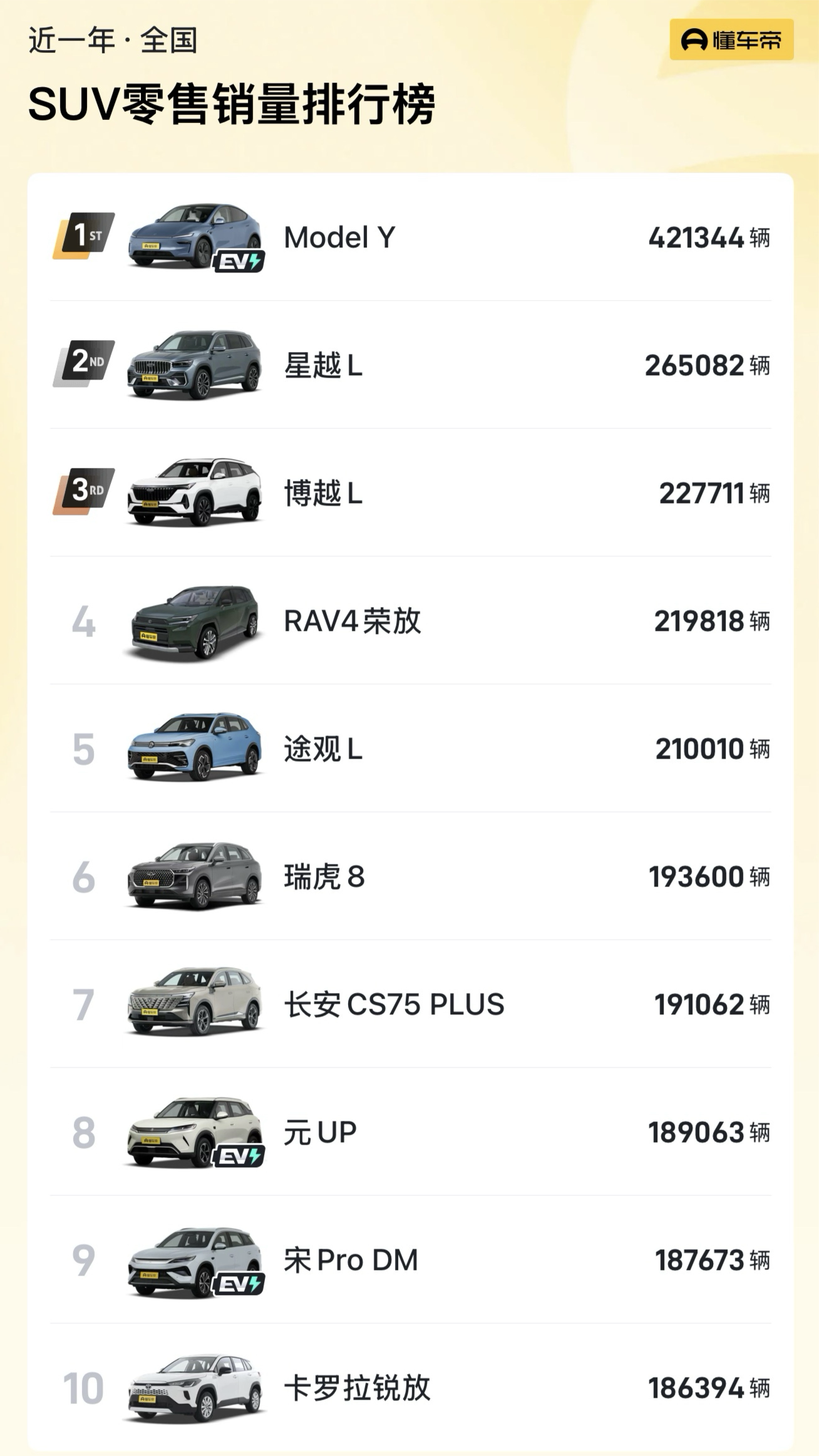 据媒体统计,在中国市场,Model Y 是近一年国内SUV销量冠军,也是连续四年来中高端车型销量的第一名。