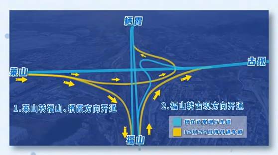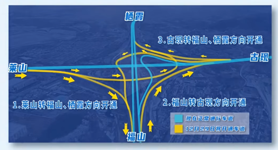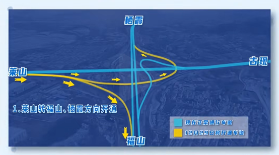 1、大杨家枢纽莱山转福山、栖霞方向开通,莱山区上高速的车辆可以从大杨家枢纽前往栖霞、青岛。