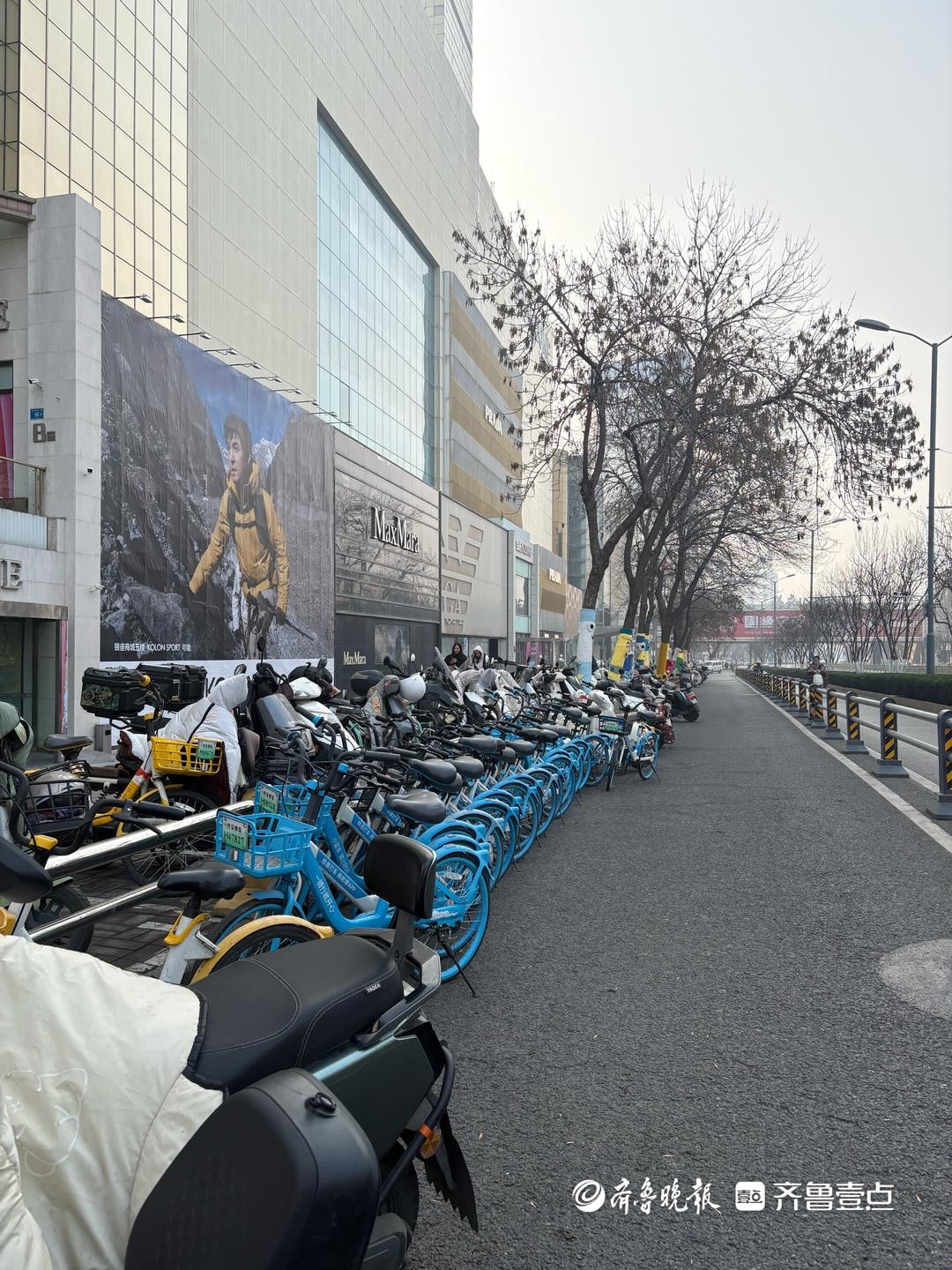 情报站·随手拍|济南泺源大街电动车乱停乱放,挤占非机动车道