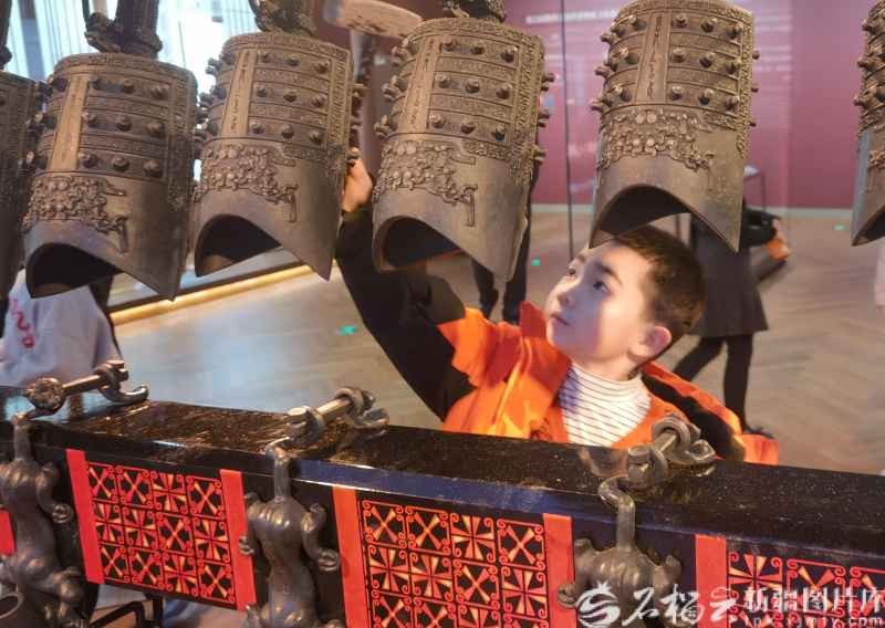 新疆非遗馆编钟体验区吸引小朋友尝试。石榴云/新疆日报记者 银璐摄