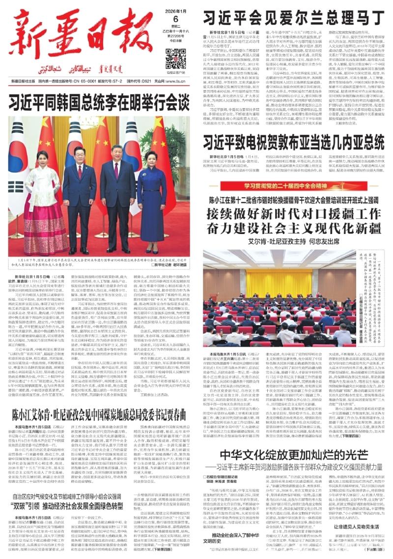 “传统与现代交融,中华文化绽放更加灿烂的光芒。”辞旧迎新之际,国家主席习近平发表的2026年新年贺词,描绘出推进文化自信自强,不断铸就中华文化新辉煌繁荣之景,在新疆各族干部群众中引发热烈反响,大家纷纷表示,要推动中华优秀传统文化创造性转化、创新性发展,为建设社会主义文化强国贡献力量。