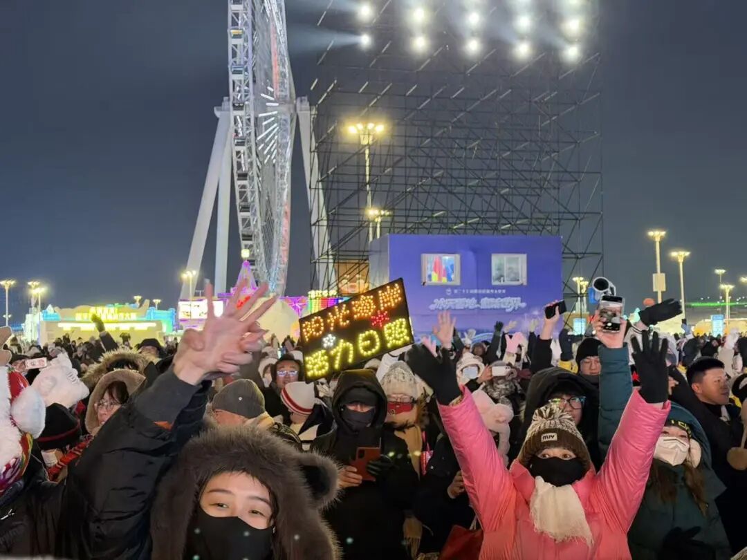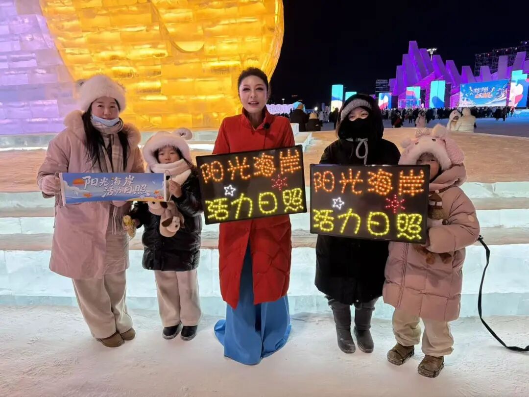 入夜的哈尔滨冰雪大世界华灯璀璨、人流涌动,宣推活动的压轴环节如期而至。当《相亲相爱》的熟悉旋律响起,日照文旅推介官手持暖光太阳元素宣传牌登台,柔和的光影与洁白的冰雪相映成趣,勾勒出一道独特的“暖光风景线”,瞬间吸引了全场目光。活动间隙,网络达人“冰城左右哥”也被这股日照热情感染,主动走上前与日照文旅推介官热情互动,一句“这日照的暖阳,把咱冰城的冬天都焐热了”,引得现场游客阵阵欢呼,氛围持续升温。不少国内外游客围拢过来,在工作人员的生动讲解下,对日照的阳光海岸、赶海拾趣充满向往,欢声笑语间暖意融融。