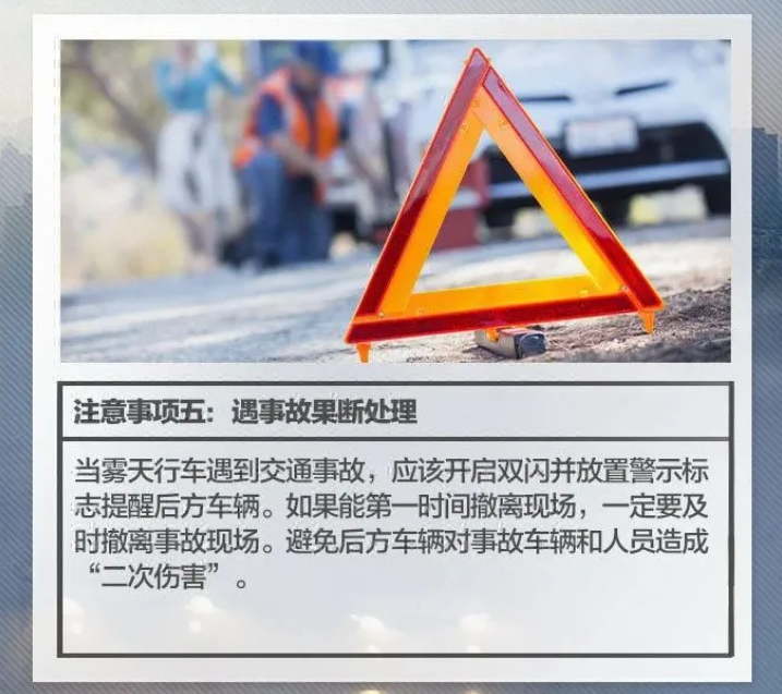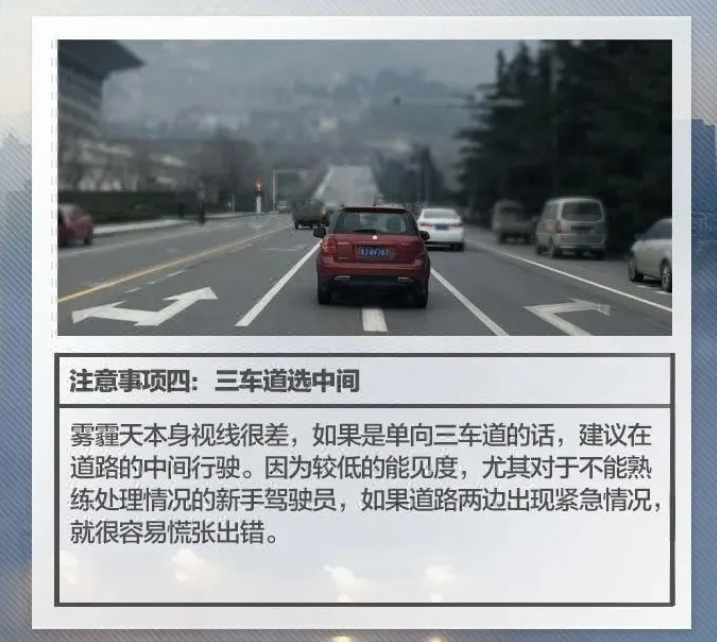 5.调整良好心态。能见度差了,车速也跟着慢了,交通比往日更加拥堵,“雾里看花”的感觉更让人提不起精神来,心情不好。在这种情况下,一定要调整好自己的心态,不要急躁,这一点很重要,既然不能解决,就不要无谓的焦急了,按喇叭和加塞抢行等行为,只能让情况越来越糟,搞得其他人心情也不好,同时增加了行驶危险系数。