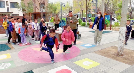 在辖区爱心企业的物资赞助下,志愿者们手持画笔,在恒兴里程户外小广场的地面上精心勾勒,萝卜蹲方格、趣味赛道等图案跃然眼前,原本单调的广场变身充满创意与活力的运动乐园。如今,这里不仅是孩子们的快乐天地,更是邻里互动的温馨平台。社区定期联合公益组织举办趣味运动会,“打地鼠”“齐心协力”等趣味项目让孩子们在笑声中锻炼协作能力,家长们则化身“拉拉队”,在交流中拉近邻里距离。活动尾声,每位参与的青少年都会获得“社会实践证书”,在他们心中种下社区共治的“小种子”。