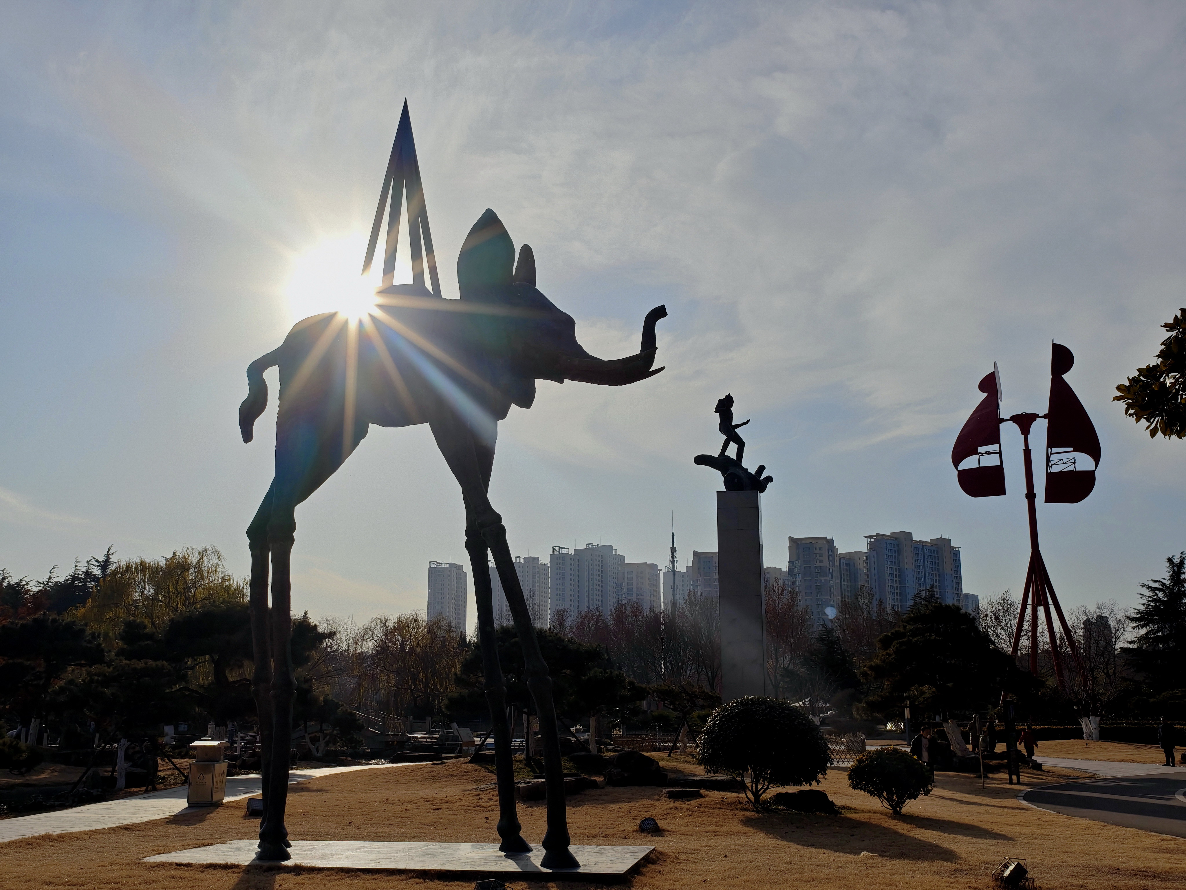 临沂国际雕塑公园,位于临沂北城新区,三面环河,是以雕塑为主题的大型公园。园内的雕塑形态各异,栩栩如生,具有较高的艺术欣赏价值。冬日,蓝天下的来自不同国家的雕塑作品,静静伫立,漫步其中,仿佛步入了跨越国界的艺术长廊,给人以艺术的享受。(周加友拍摄)