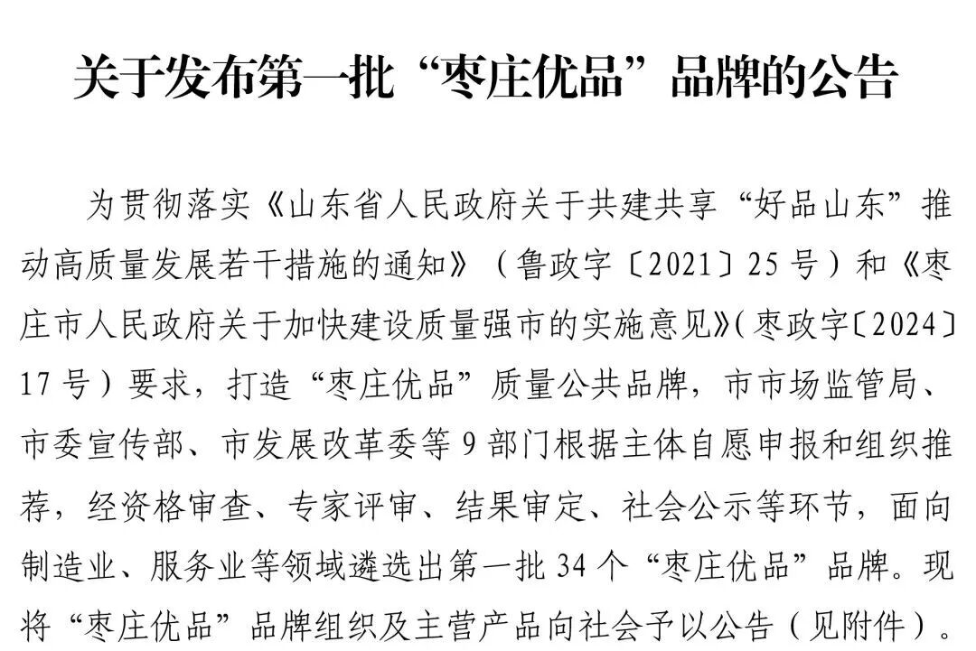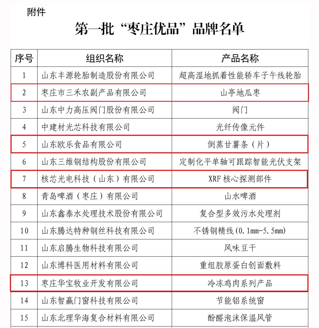 近日,第一批“枣庄优品”品牌名单重磅揭晓,山亭共有四家企业(枣庄市三禾农副产品有限公司、山东欧乐食品有限公司、核芯光电科技(山东)有限公司、枣庄华宝牧业开发有限公司)强势登榜。