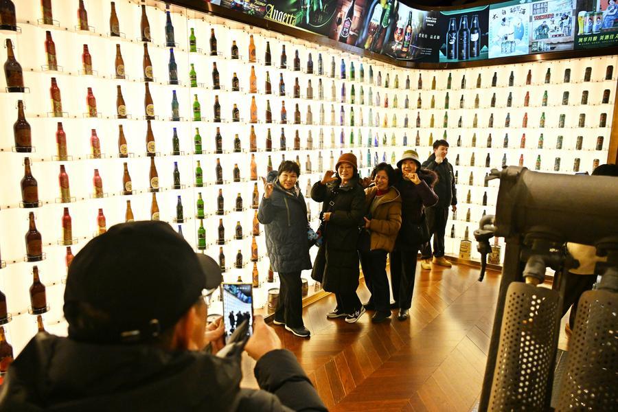 지난해 12월 31일 칭다오 맥주 박물관에서 사진을 찍는 한국 관광객. (사진/신화통신)