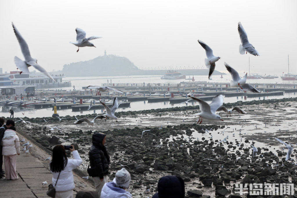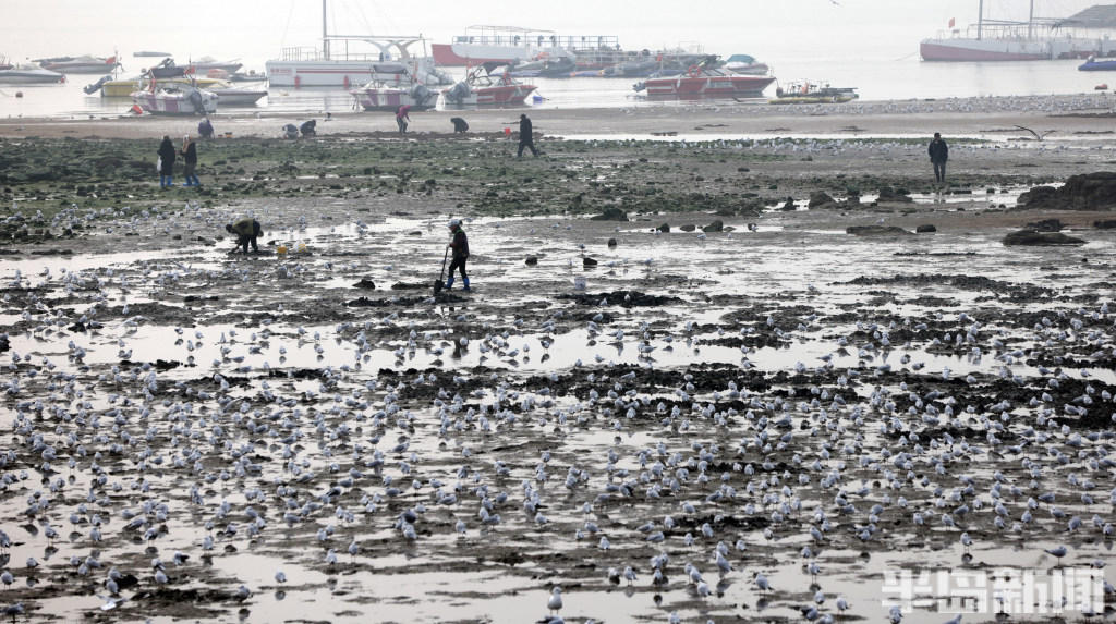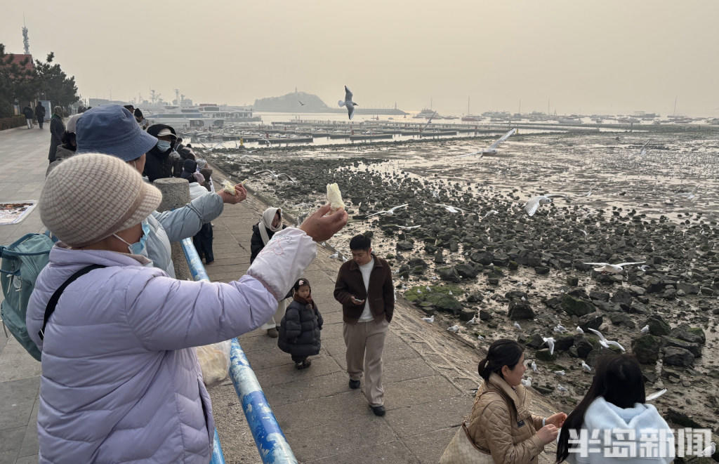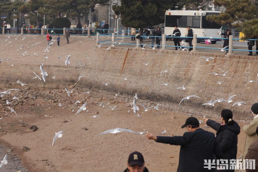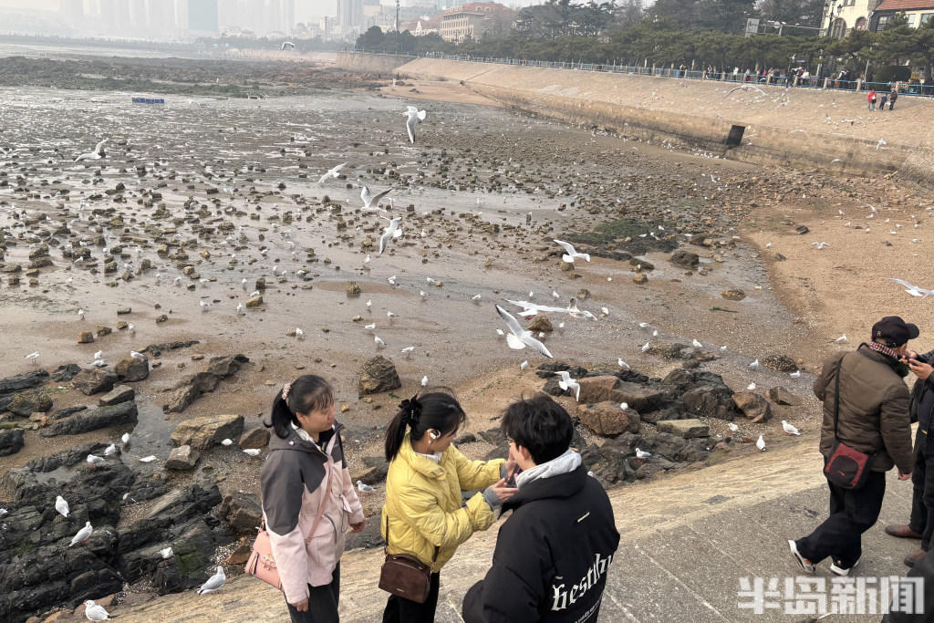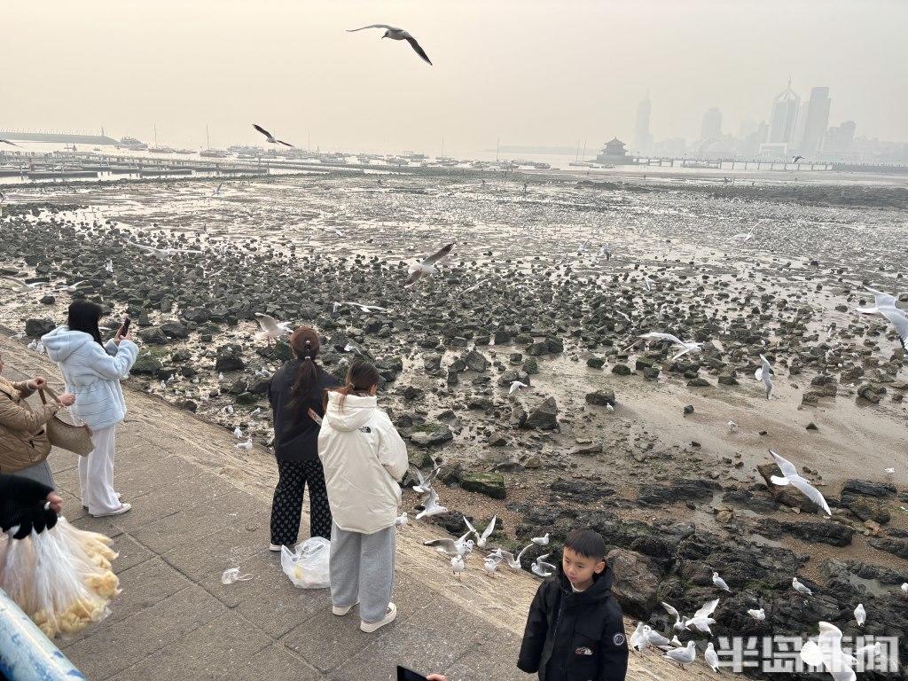 经验丰富的 “老青岛” 们更是装备齐全,带着铁锹等工具走向退潮深处,娴熟地搜寻着藏匿在泥沙里的海味。而偏爱赏鸥的市民,则在岸边、礁石旁驻足,手中的馒头、面包引得成群海鸥翩跹而至,人与自然的和谐图景,勾勒出独属于岛城冬日的惬意与浪漫。