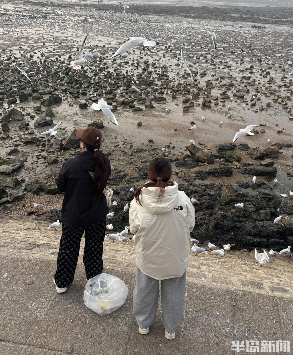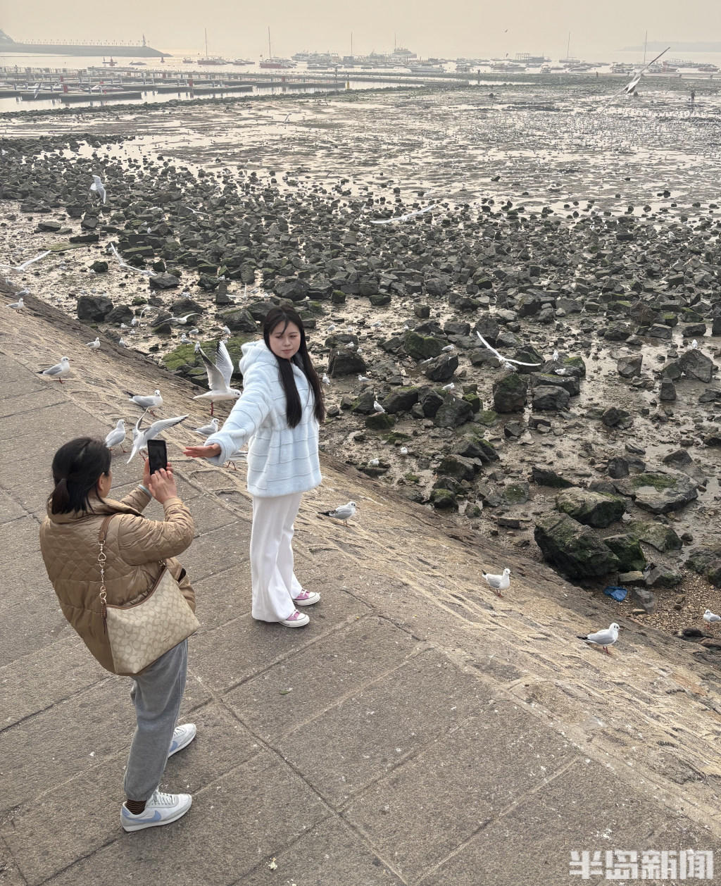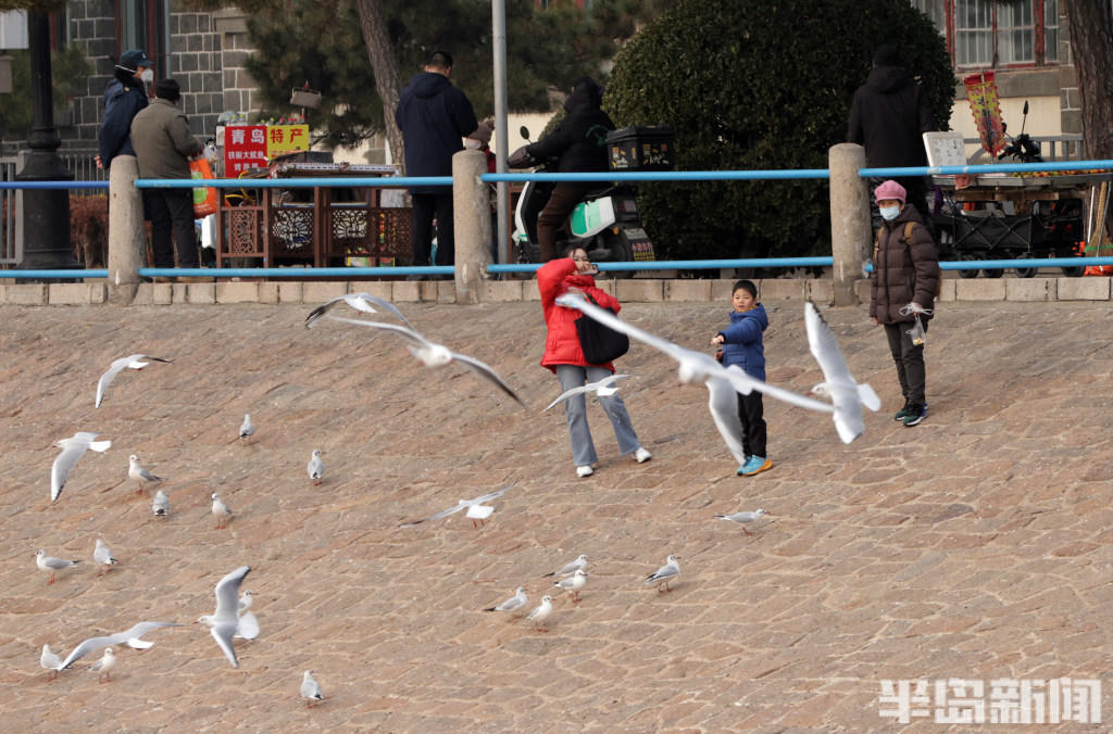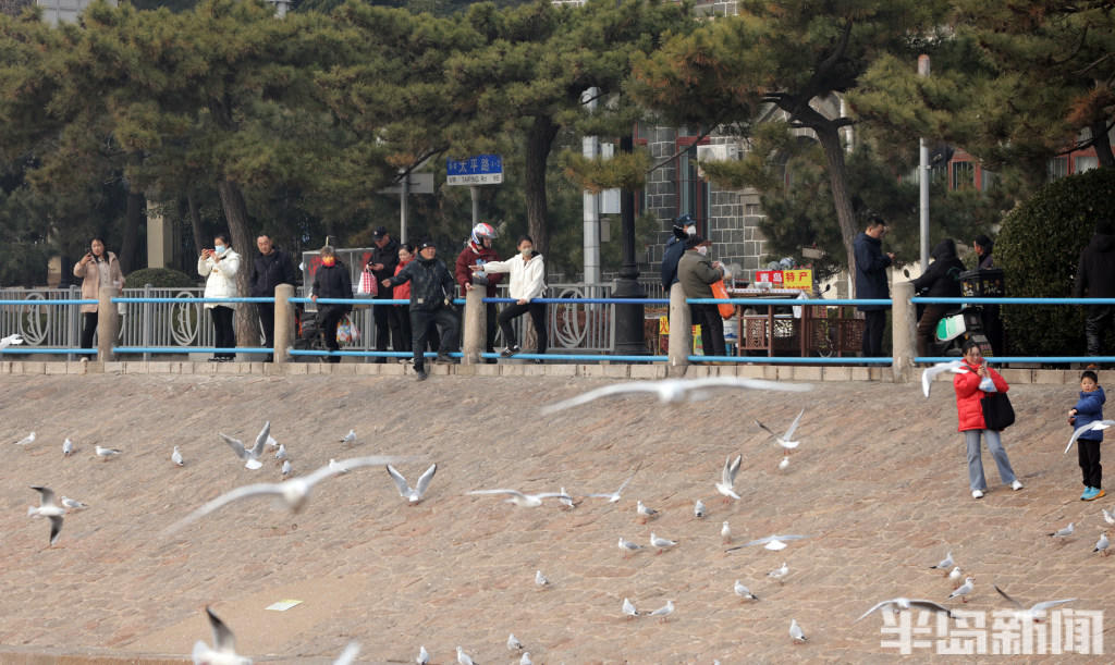 经验丰富的 “老青岛” 们更是装备齐全,带着铁锹等工具走向退潮深处,娴熟地搜寻着藏匿在泥沙里的海味。而偏爱赏鸥的市民,则在岸边、礁石旁驻足,手中的馒头、面包引得成群海鸥翩跹而至,人与自然的和谐图景,勾勒出独属于岛城冬日的惬意与浪漫。