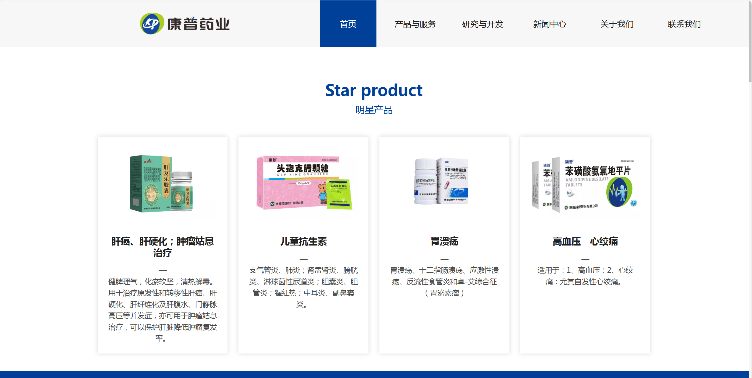康普拥有注册产品批文达两百多个,拥有“康普”、“新快康”、“郎力夫”、“孢克” 等品牌的化学药和“喜来乐”牌中成药系列产品。产品涉及治疗消化系统疾病类、心脑血管疾病类、肝肾疾病类、抗微生物感染类、补益营养和辅助类、原料药等类别。