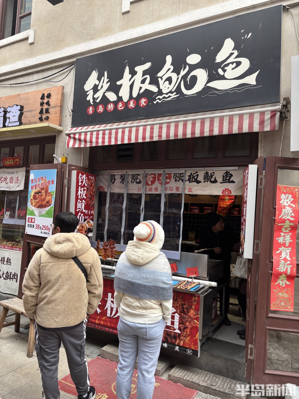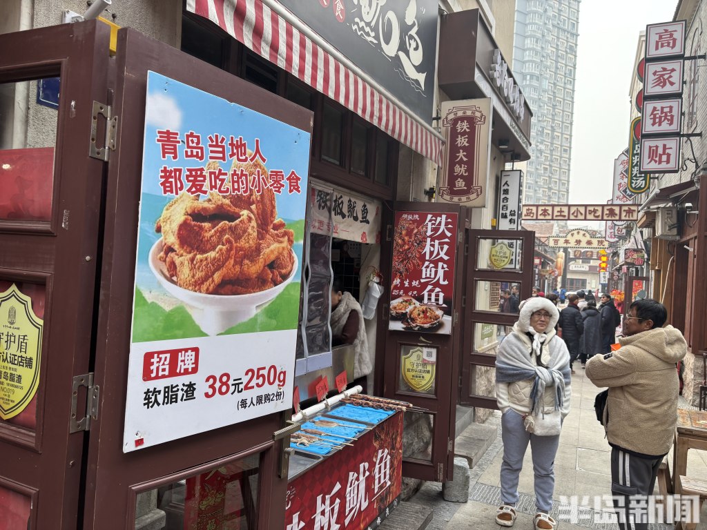 寒冬并未消减游客的热情,豆腐脑的鲜香、锅贴的酥脆、烤鱿鱼的焦香在街巷间飘散,这些经典美食早已成为劈柴院的 “金字招牌”,吸引着一波又一波食客驻足。