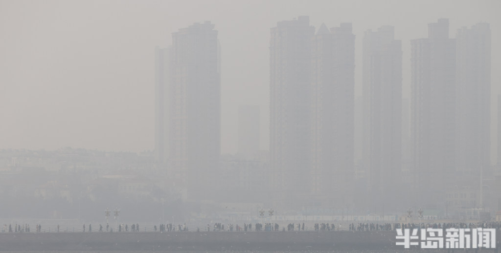 1月6日,青岛海边出现大雾天气,从栈桥、八大峡望向海面,远处景色在雾气中若隐若现。(半岛全媒体记者何毅)