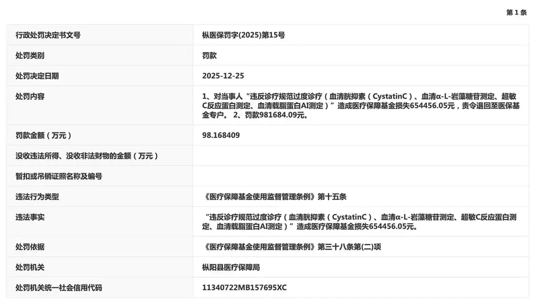 近日,#安徽一医院因过度诊疗被罚超98万元#的话题冲上社交平台热搜,引发公众对医保基金安全的广泛关注。信用中国(安徽)网站显示,枞阳县中医院因违反诊疗规范过度诊疗,被枞阳县医疗保障局罚款981684.09元。造成的医疗保障基金损失654456.05元,责令退回至医保基金专户。这笔带着“痛感”的罚单,不仅是对一家医院违规行为的惩戒,更向全社会释放出明确信号:医保基金是千万参保人的“救命钱”,容不得任何机构以“过度诊疗”之名“薅羊毛”。详情>>