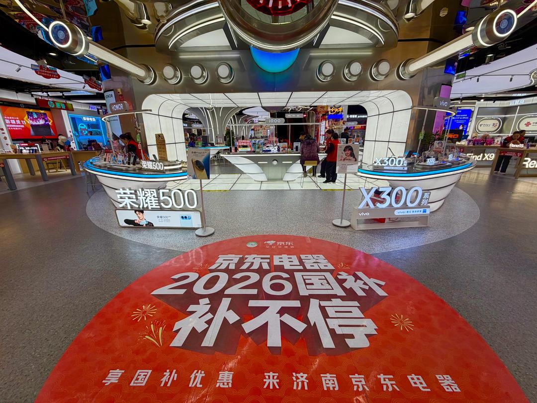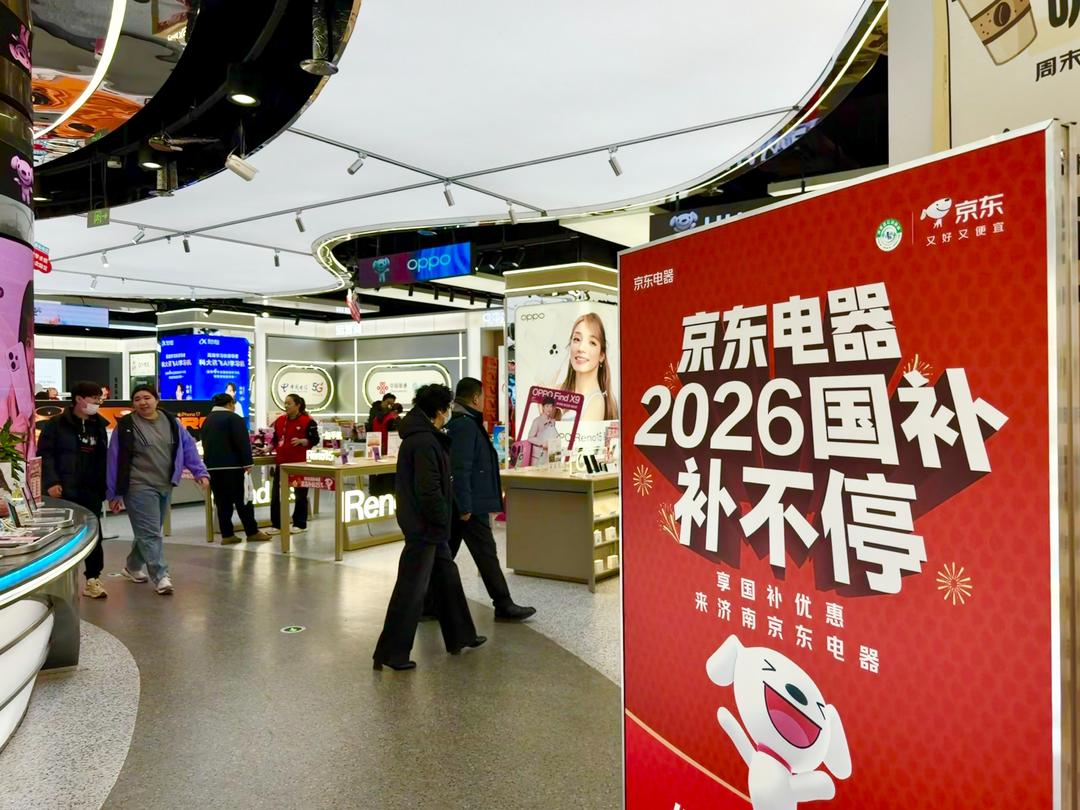 1月6日上午,济南“国补第一单”在京东电器城市旗舰店济南泉城路店诞生,标志着新一年消费提振政策的实效开端。
