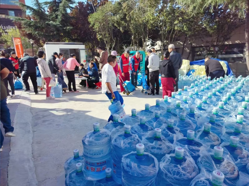 溪谷美寓电梯施工前为居民免费发放物资。