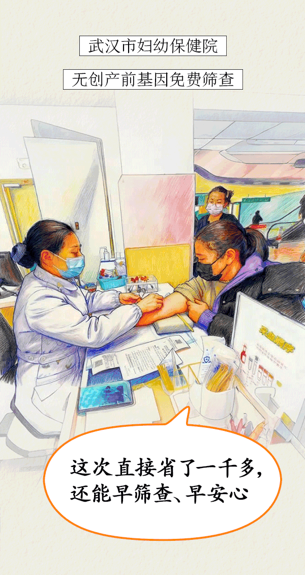 在武汉市妇幼保健院,怀孕3个月的张女士开心地享受到无创产前基因免费筛查。她说:“我和丈夫都不是武汉户籍,生一孩时没享受到免费筛查,这次直接节省了1000多元。”