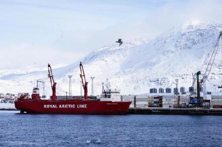 2025年3月20日,货轮停靠在丹麦自治领地格陵兰岛努克港。新华社记者彭子洋摄