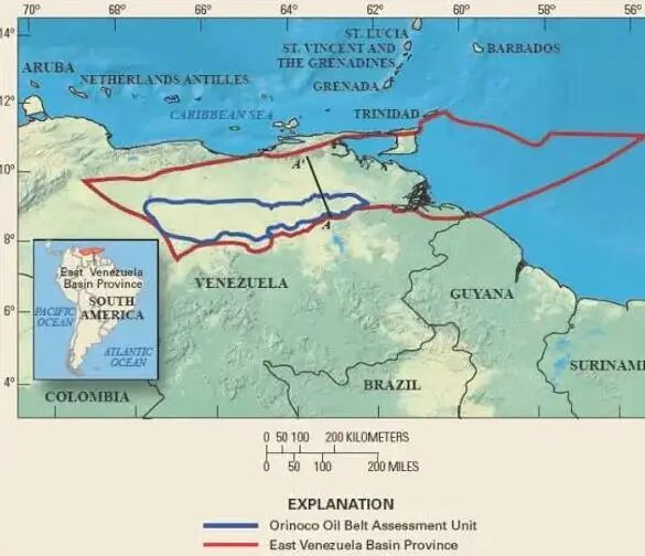 更重要的是,重质油储量集中在狭长的奥里诺科重油带。美国地质调查局在一份报告中指出,该区域约 50000 平方千米,地下蕴藏着超过 1 万亿桶的重质油资源,其中大约 5130 亿桶被认为技术上可采,是全球最大的可采重质油聚集区之一。这一储层中的原油普遍 API 低于 10°,呈超重油或特重质原油性质,密度接近甚至超过水,被称为天然沥青。