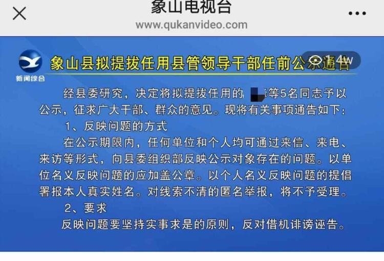 1月6日,记者在多个网络平台查询,均未发现该则公示。这则电子版公示为何模糊呢?记者致电象山县组织部,工作人员表示,他们不回复此问题,只接受举报等反映。