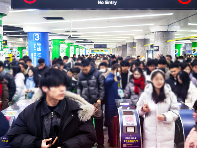 不同于日常运营,跨年夜的客流具有“瞬时集聚、集中返程”的特点,对运力调配提出了极高要求。青岛地铁以“预判在前、动态调整”的科学保障,精准研判客流峰值,敲定差异化延时方案,实现热门活动区域全覆盖。在此基础上,通过压缩行车间隔、加开列车提升运力,用高效调度让地铁成为跨年夜客流疏运的主力军,其中五四广场、石老人浴场等周边站点进出站量达66.6万人次,为迎新年活动提供了坚实出行支撑。