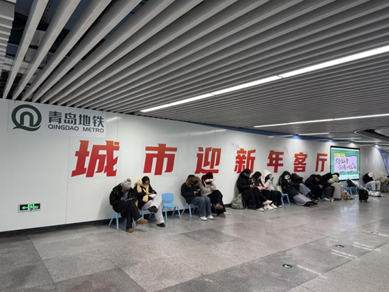 跨年夜的温暖,不仅在于顺利回家,更在于途中的悉心照料。青岛地铁在全线网配备休息区座椅、医药箱,在台东站、麦岛站等重点车站专设“青锋暖行”服务台,提供热水、姜茶等21项暖心举措,为乘客驱散疲惫。