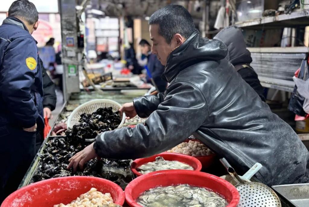 尽管当前海虹的肥度略逊于早春,但凭借新鲜度高、价格亲民的优势,依然成了农贸市场里的“平价鲜选”,既满足了市民冬日尝鲜的需求,也为市场添了更多烟火气。