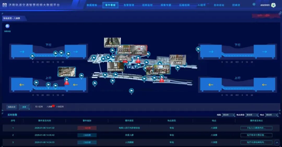 车站内,无处不在的“智慧之眼”(AI视频分析系统)与智能感知设备,构筑起主动安全防线。 系统可自动识别区域入侵、长时间滞留等事件;对客流拥堵、重点区域人群聚集等风险进行智能预判,实现安全防控关口前移。智能化也深入运营流程,自动开关站、智能巡检等应用显著提升了车站管理效率与精准度。