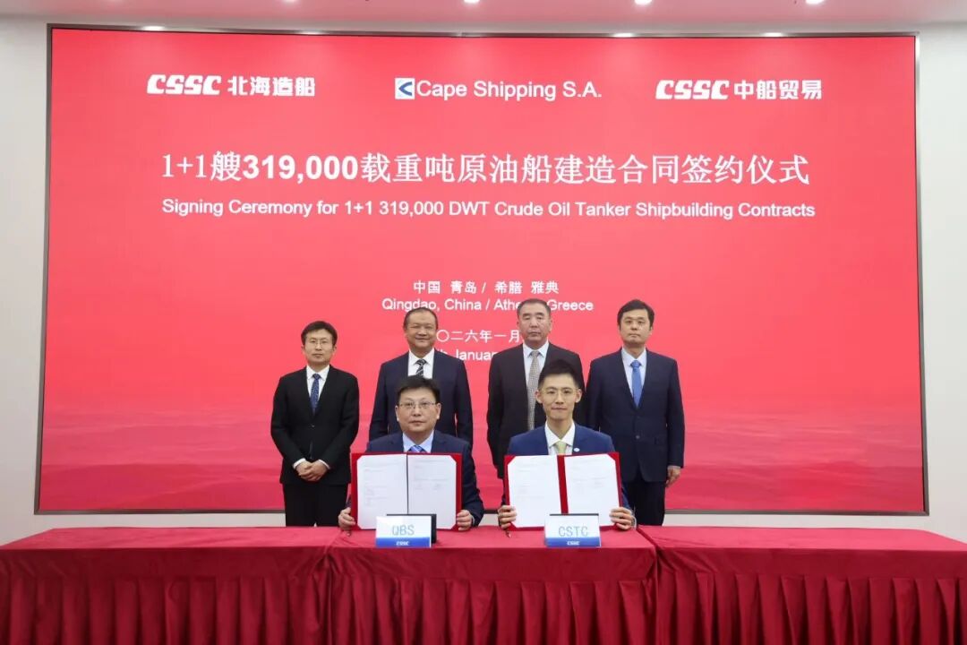 1月5日,北海造船联合中国船舶工业贸易有限公司,与希腊船东Cape Shipping通过视频连线签署了1+1艘超大型原油船建造合同。此次签约是北海造船在大型油船领域实现的连续批量接单,标志着公司在“十五五”起步阶段顺利实现“开门红”。